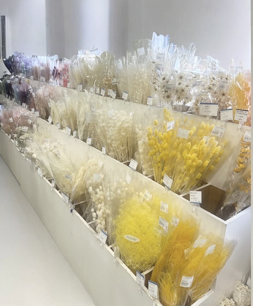フロア2F プリザーブドフラワー、ドライフラワー、花器、バスケット、リボン、資材等